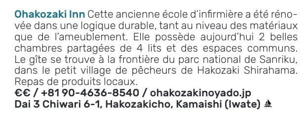 フランスの出版社 Viatao が発行する、持続可能な観光をテーマにしたガイドブック 「Guide Tao – Japon, un voyage écolo et éthique」(2022年1月刊)に、「御箱崎の宿」 および 「みちのく潮風トレイル」 が紹介されました!